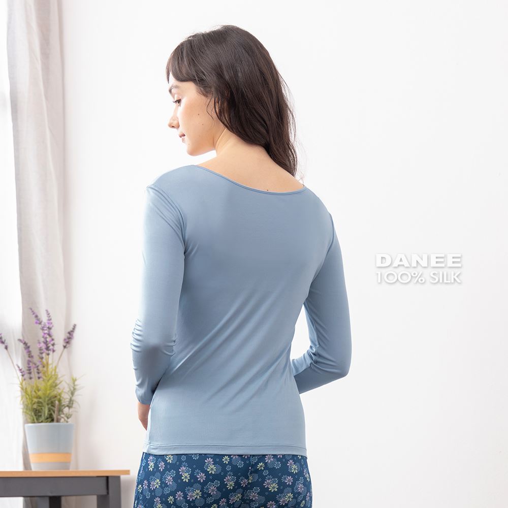 純蠶絲42針110G女圓領長袖素色衛生衣-WWC6A3019B(天青藍)