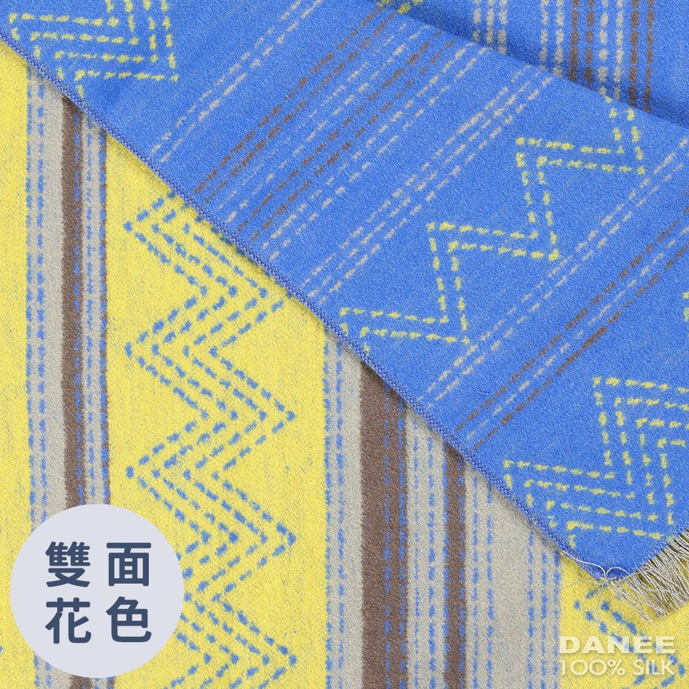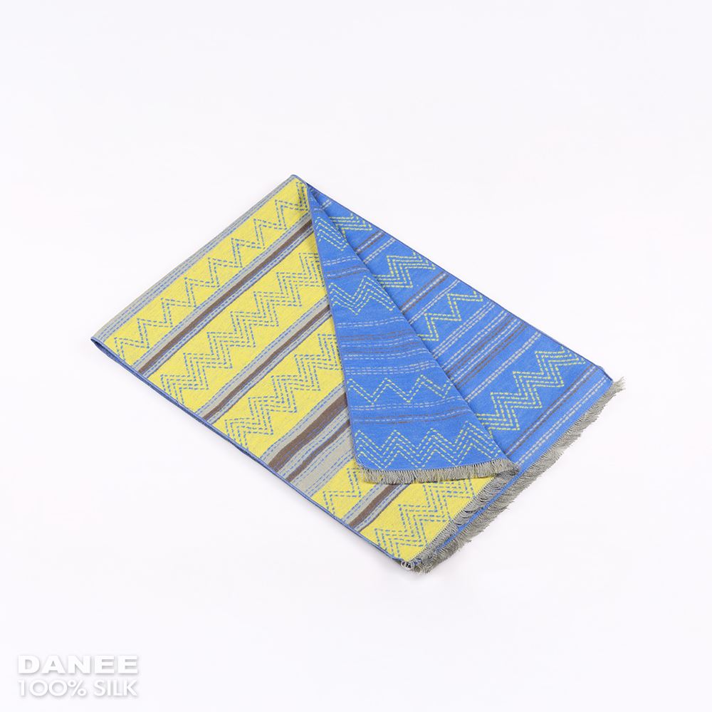 純蠶絲保暖絲拉絨圍巾-XYG0ZA014E(黃藍條紋)