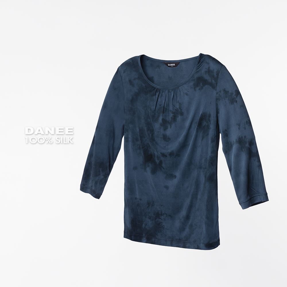 純蠶絲42針110G女七分袖內搭上衣-XWL5A301IU(雲藍水墨)