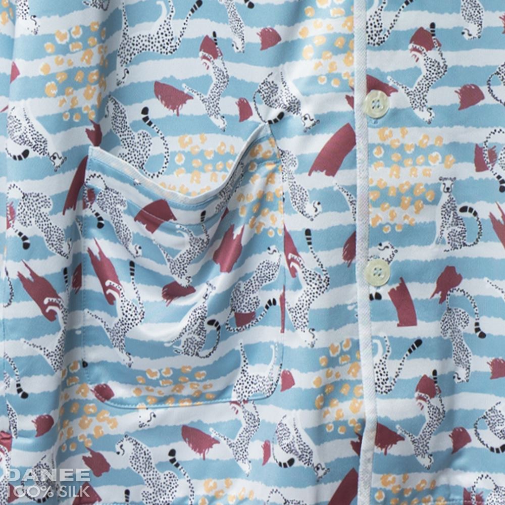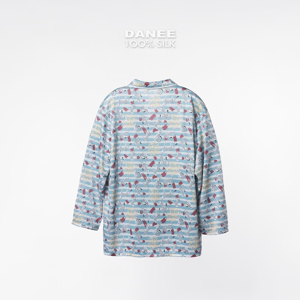 透氣舒適蠶絲厚鳳眼中性款印花居家長袖上衣-XML6BX01LV(灰藍豹紋)