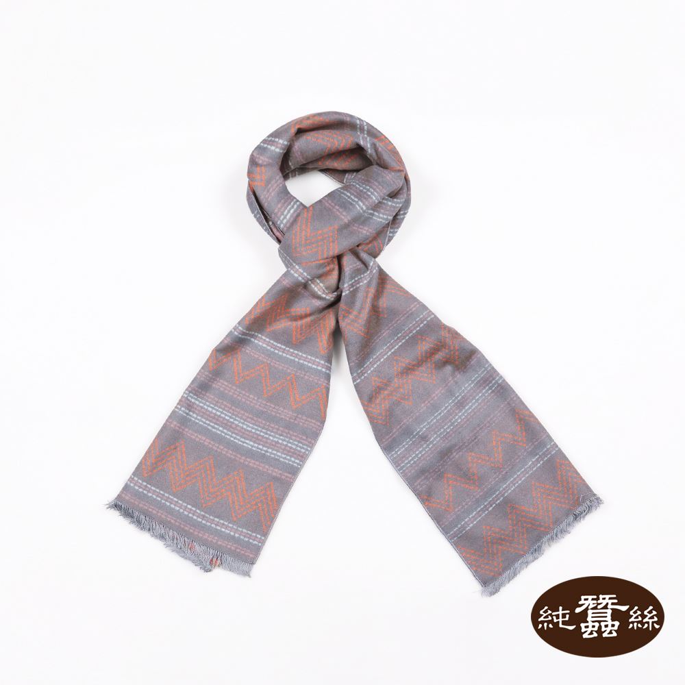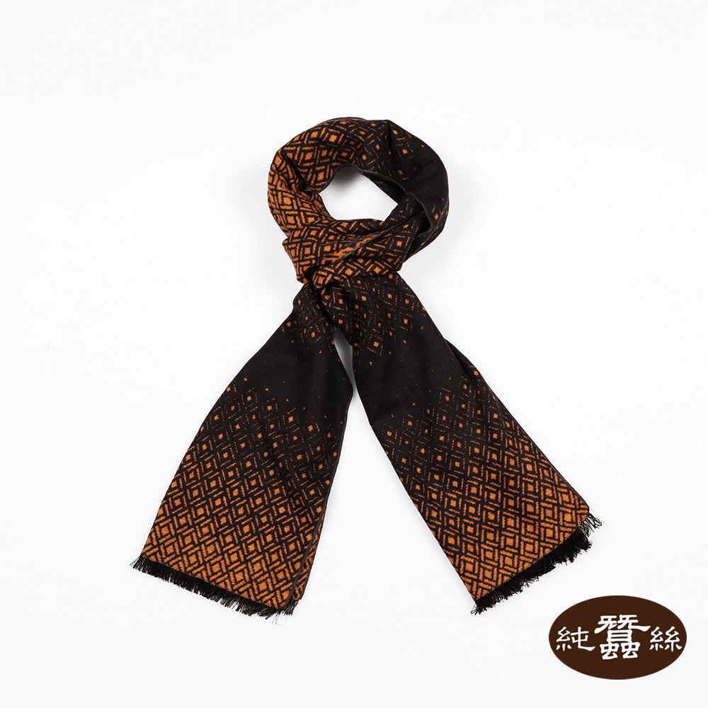 純蠶絲保暖絲拉絨圍巾-XYG0ZA018R(橙灰)