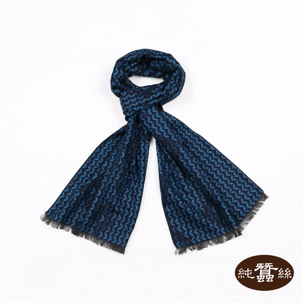 純蠶絲保暖絲拉絨圍巾-XYG0ZA019H(銀湖藍)