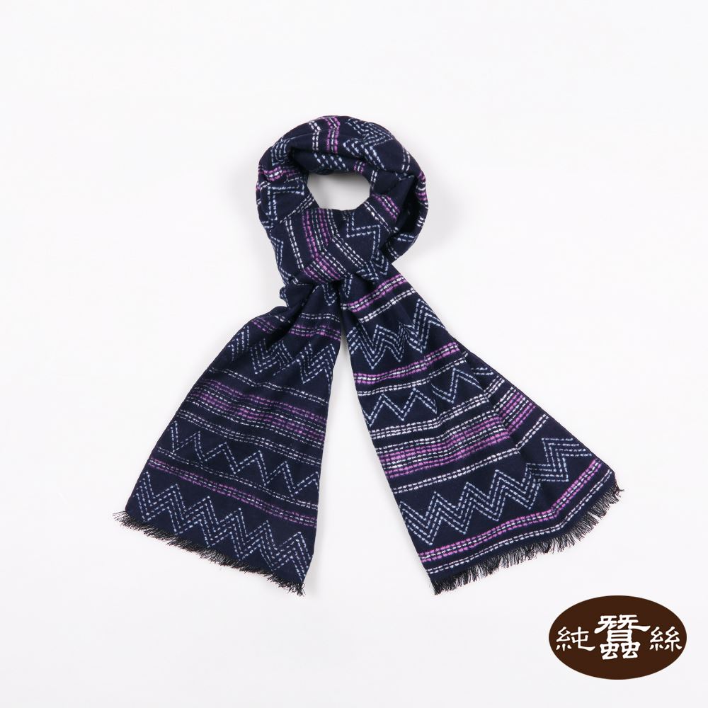 純蠶絲保暖絲拉絨圍巾-XYG0ZA019R(深藍粉條)
