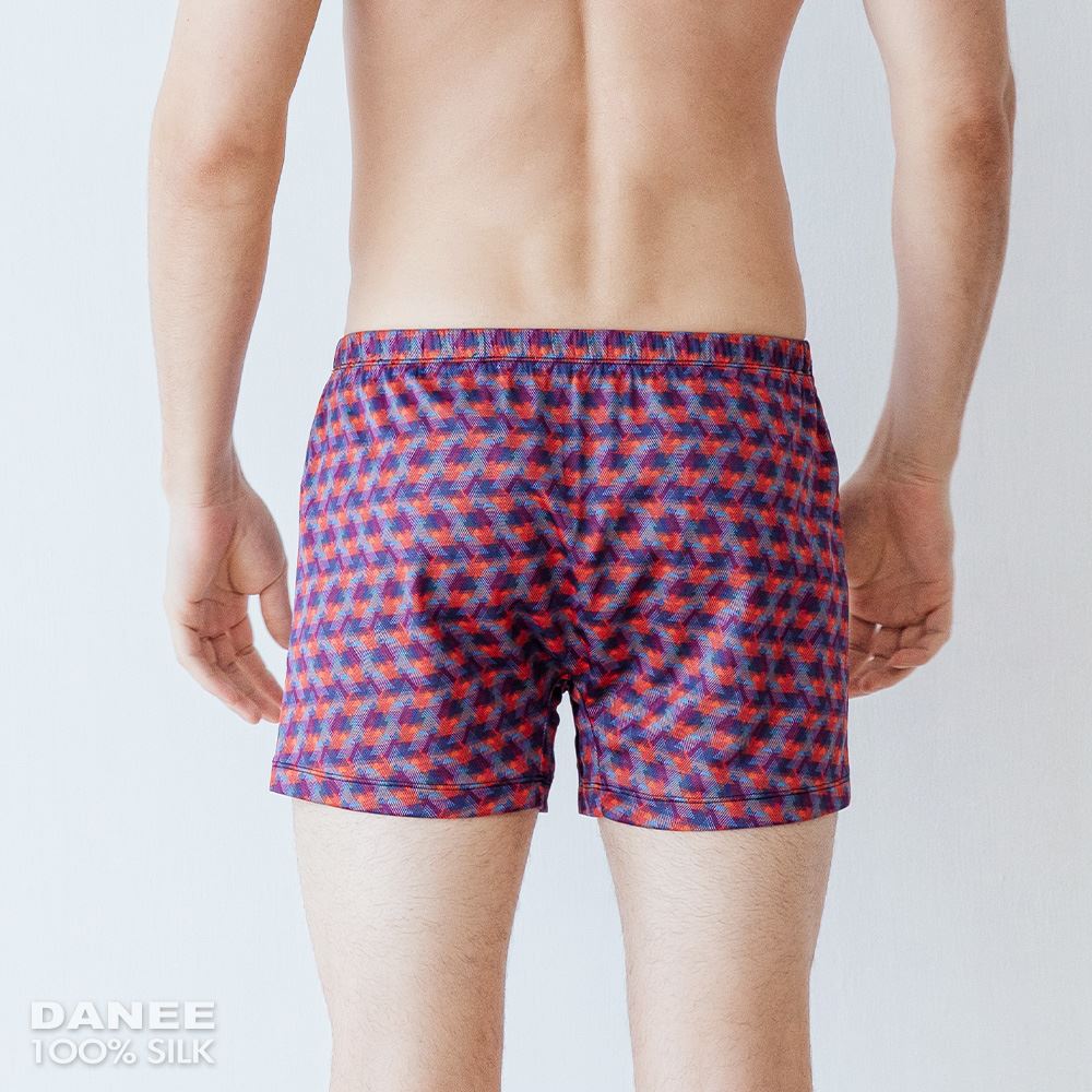 透氣舒適蠶絲男鳳眼中腰平口四角內褲-WMA4BQ02FN(紅橘幾何)